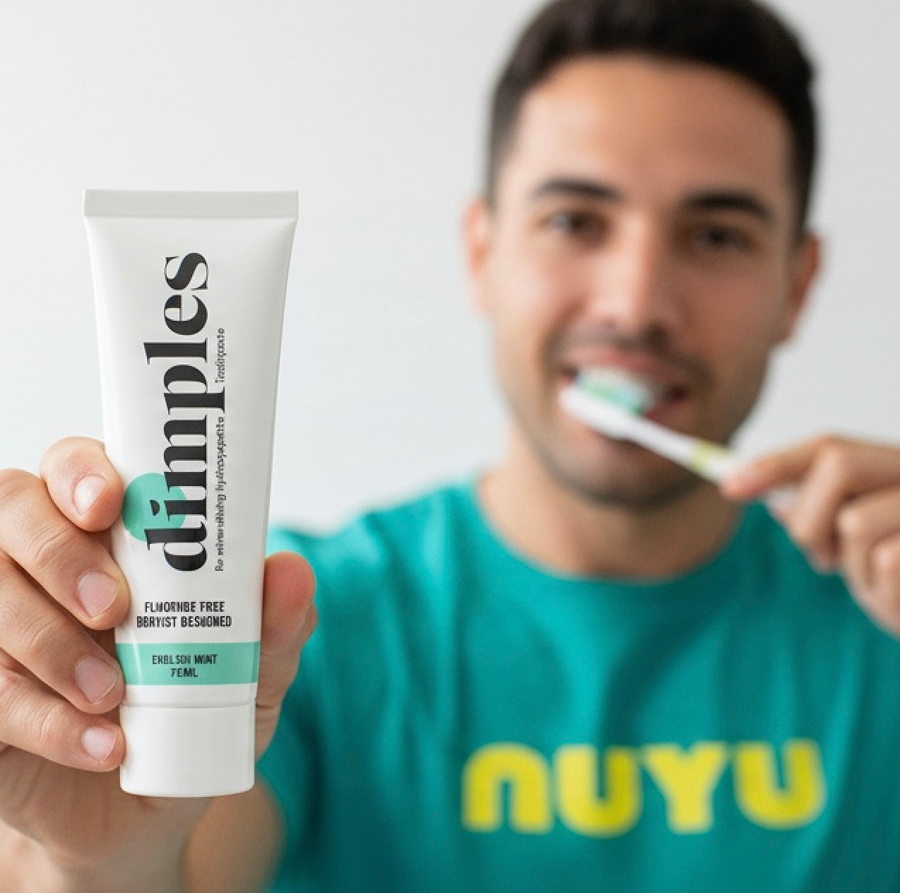 “Dimples uses Hydroxyapatite, the same mineral as your enamel, to naturally strengthen and protect your teeth. It tastes fresh, feels smooth, and makes every brush a proper upgrade.”