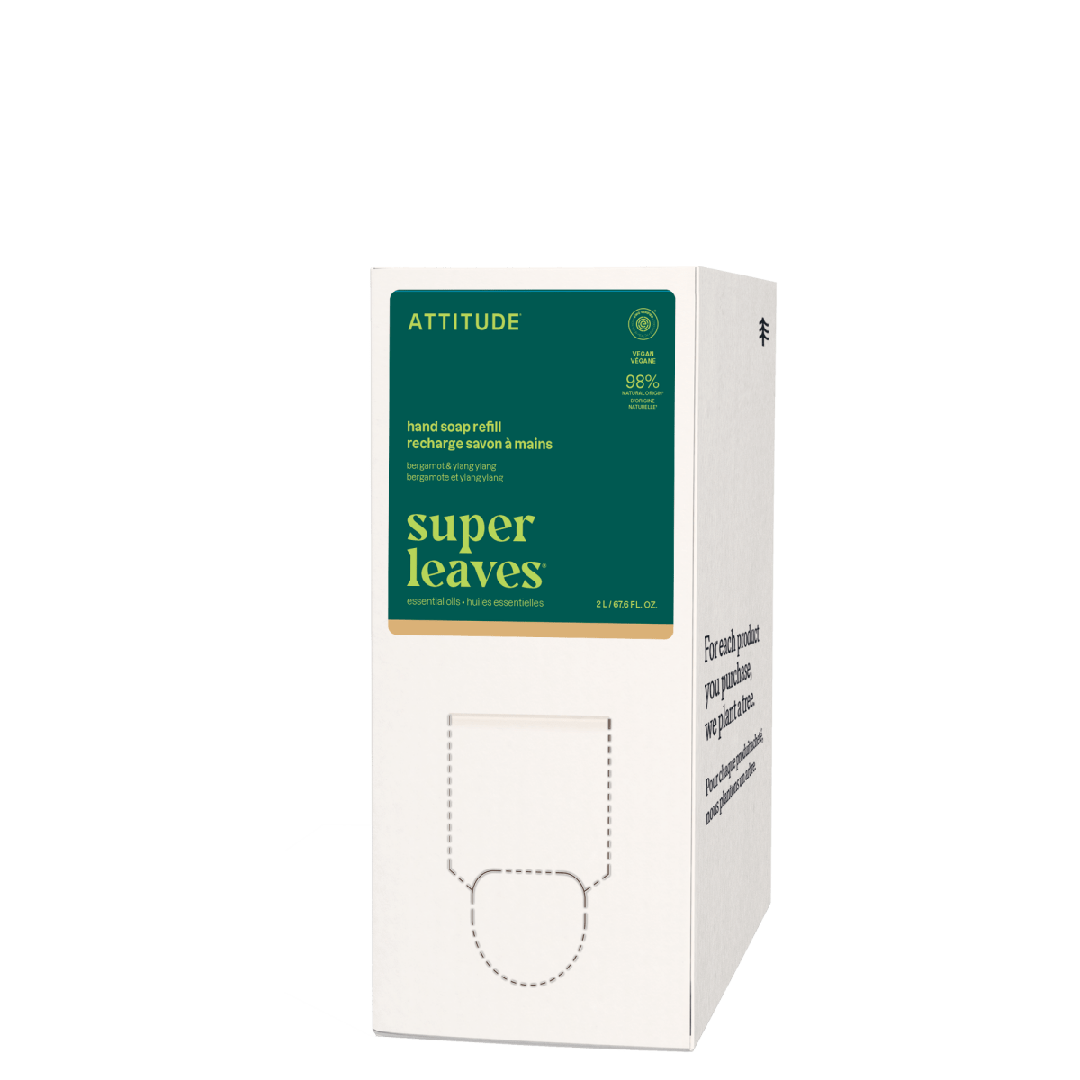 Infused with an invigorating and fruity aromatic blend, ATTITUDE’s Hand soap – Bergamot & Ylang-Ylang is made with 98.9% naturally sourced ingredients* that cleanse and soothe the hands. This hand soap liquid is enriched with bergamot and-ylang-ylang essential oils known for their exotic aromas that will take you far from everyday stress. Formulated with olive leaf extract that soothes dry skin and helps restore suppleness and firmness. Ripe, tangy top notes of orange and grapefruit blend with a heart of bergamot and ylang-ylang, supported by a base of earthy patchouli. EWG VERIFIED®, vegan and biodegradable formula available in an easy-to-use 2 L soap refill that contains up to 81% less plastic, but up to four times more product. More soap for you, less waste for the planet.