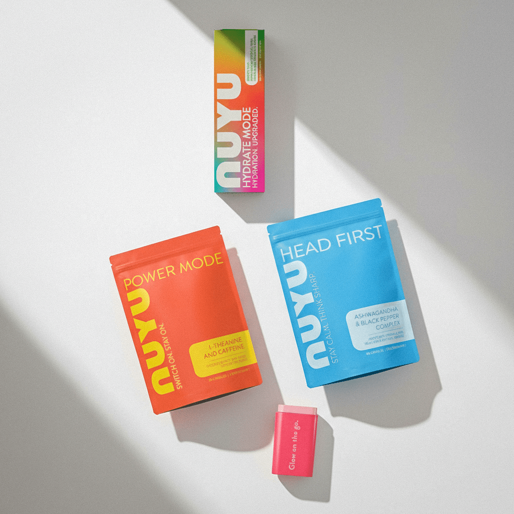 Meet your all-day power kit. Clean focus, smooth calm, on-the-go supplements, and a hydration boost — all in one pocket-ready bundle. L-Theanine & Caffeine switches you on, Ashwagandha helps you stay grounded, and Hydration keeps you going. Simple. Effective. NUYU.