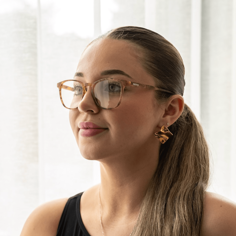 NUYU Afterlight Blue Light Glasses are designed for screen use across the day and evening. Available in different lens strengths, they help reduce blue light exposure from digital devices and support visual comfort - whether you’re working, scrolling, or winding down.